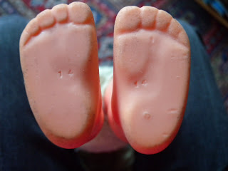 Jasmine is displayed in her straw hat that I got from somewhere and a dress I made out of scraps of stretch jersey fabric. I've still got a few of her original bought and home made outfits.